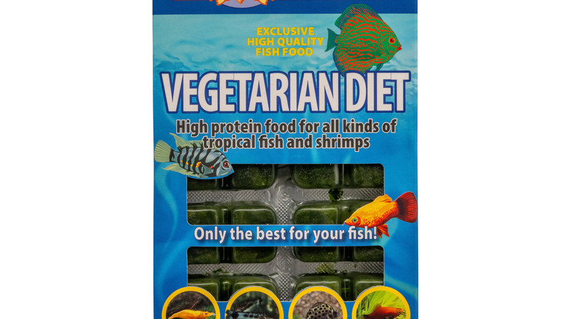 Vegetarisch dieët bestaande uit spinazie en spirulina. Ideaal voor garnalen en algenetende vissen. Spirulina versterkt de kleur van de dieren.